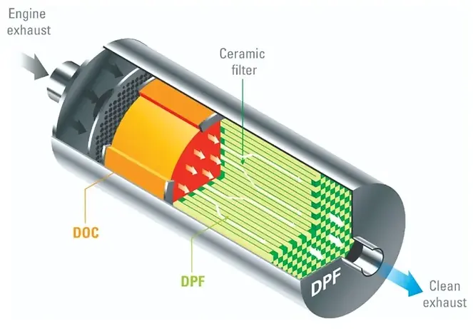 Bầu DPF (Diesel Particulate Filter) là bộ phận lọc muội than (PM) trong khí xả động cơ Diesel.Về cấu tạo, một bầu DPF hoàn chỉnh thường gồm các phần chính sau: