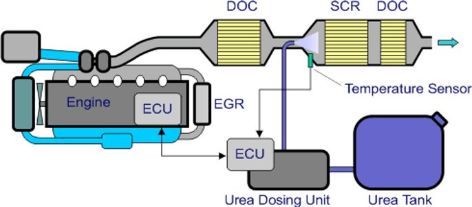 Thường theo thứ tự:Động cơ → DOC → DPF → phun AdBlue → SCR → ống xả