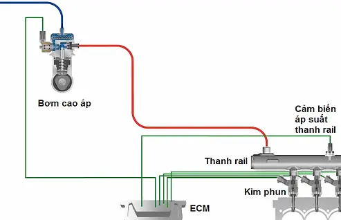 sẽ tính toán và nhận biết áp suất thực tế và điều chỉnh van FPRV – van điều áp trên bơm cao áp. Khi áp suất cao vào buồng đốt động cơ, kim phun nhiên liệu được điều chỉnh để bơm nhiên liệu tùy theo ECU.